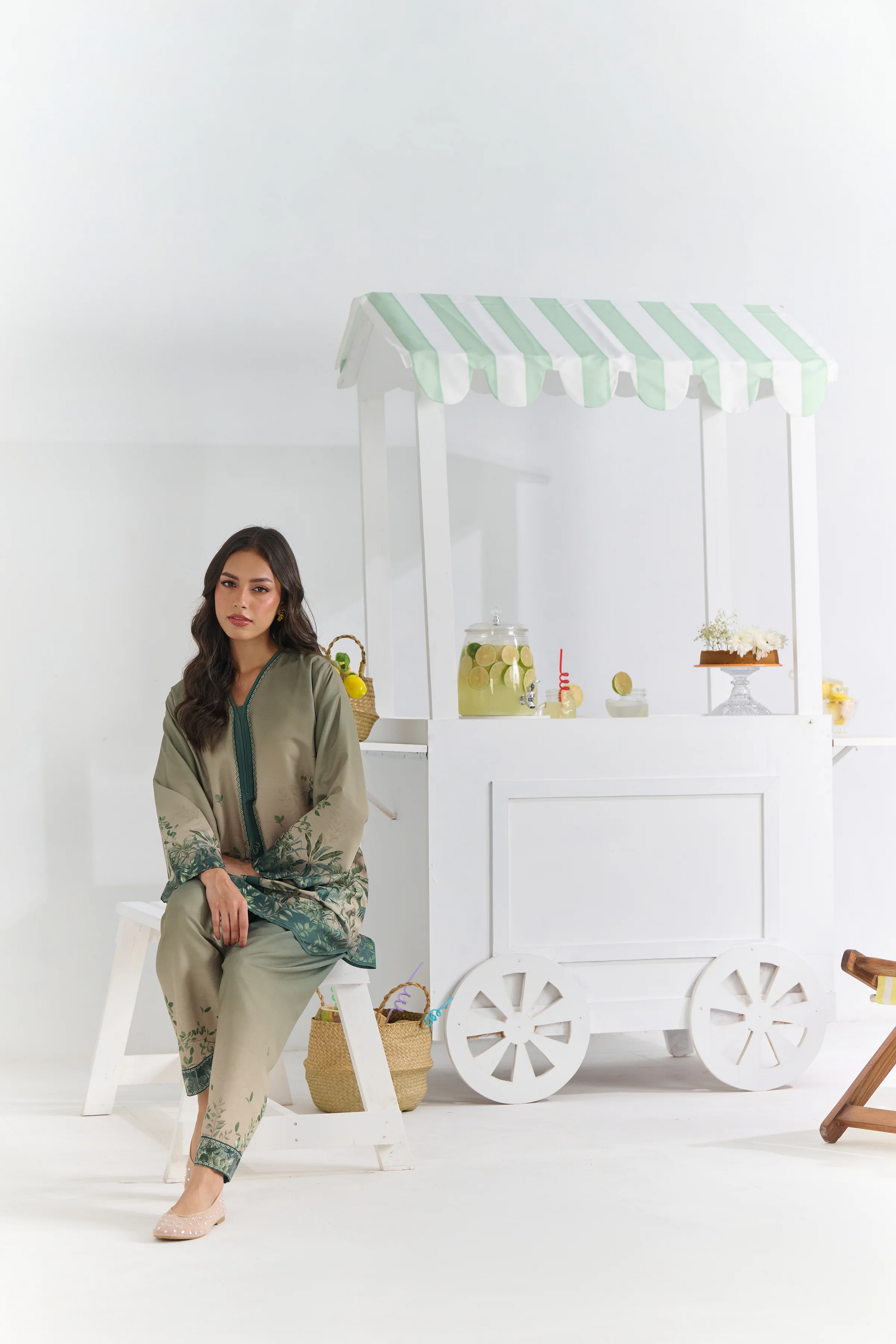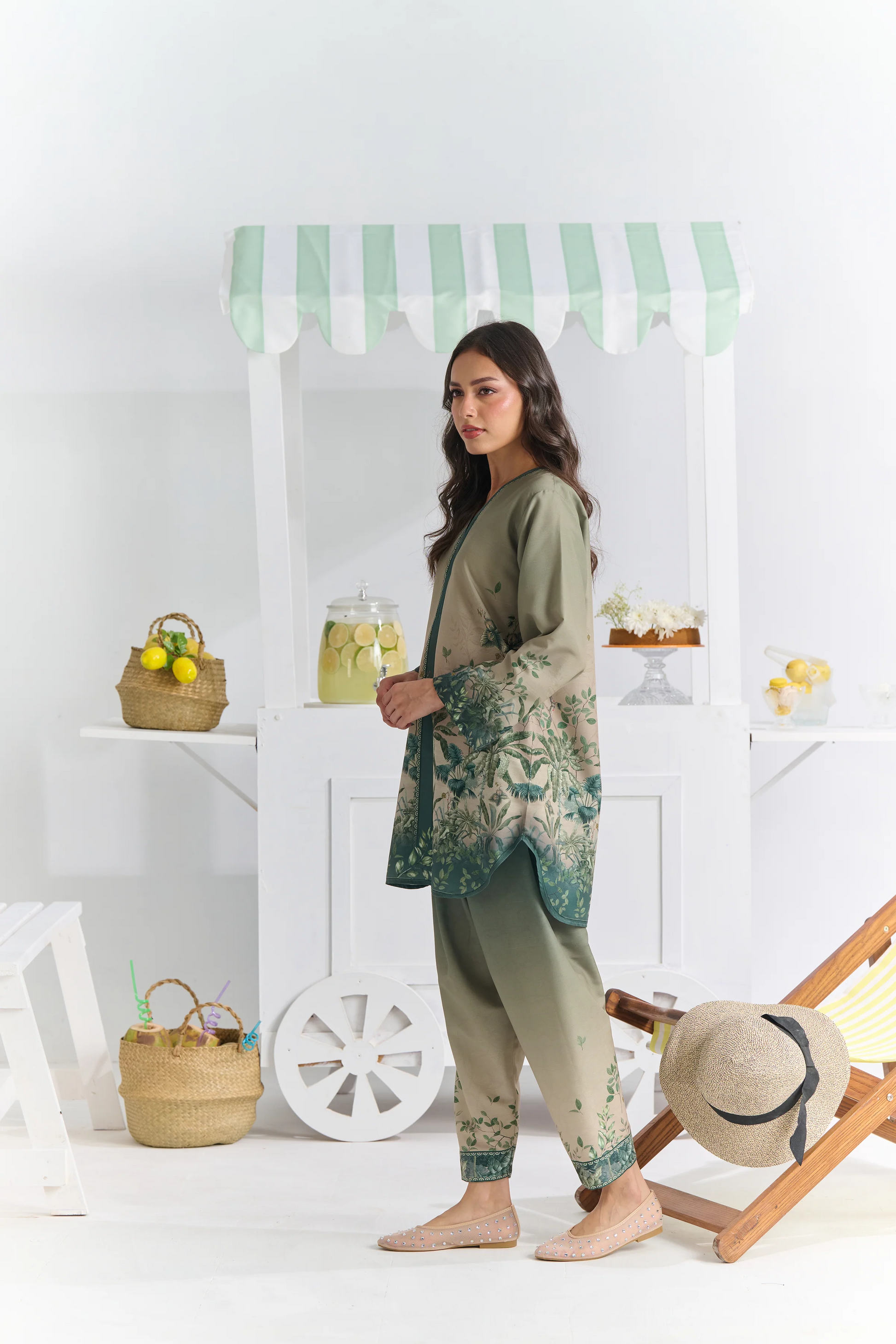 Elegant Olive Green Kurta Set With Dupatta, Showcasing A Soothing Ombre Effect Blended With Detailed Botanical Prints For A Refreshing Look. Designed With A Relaxed Straight Silhouette, V-Neckline, And Full Sleeves, This Outfit Balances Comfort And Style Perfectly. Paired With Matching Trousers And A Coordinated Printed Dupatta, It Creates A Sophisticated Ensemble Ideal For Daytime Gatherings
